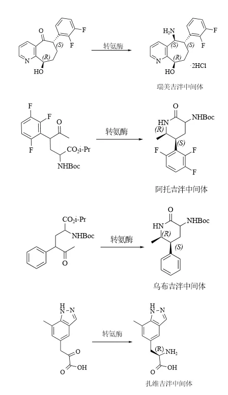 该酶广泛用于合成手性胺、氨基酸及其衍生物,如西格列汀、瑞美吉泮、阿托吉泮、乌布吉泮、扎维吉泮等原料药或其中间体: