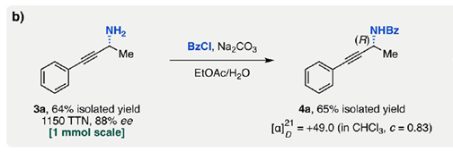 该研究开发的这种生物催化过程,有着高的催化效率和高选择性(高达2610总周转数(TTN)和96% ee),并且可以在较具制备规模的反应量上进行。