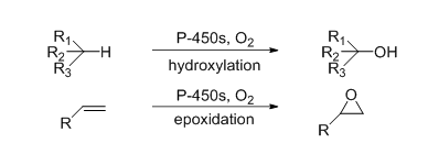 细胞色素P450氧化酶(CYP): 烷烃羟基化(C-H键活化)、双键环氧化和杂原子氧化